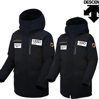 라미네이팅 코팅원단으로 생활방수기능이 있고, 하이넥 디자인과 오리털 충전재로 보온성을 높여 겨울 스포츠 웨어로도 활용성이 높은 패딩입니다. 백라인의 퀄팅 처리로 세미슬림핏이 자연스럽게 여성스러운 라인을 만들어준다는 장점이 있습니다.